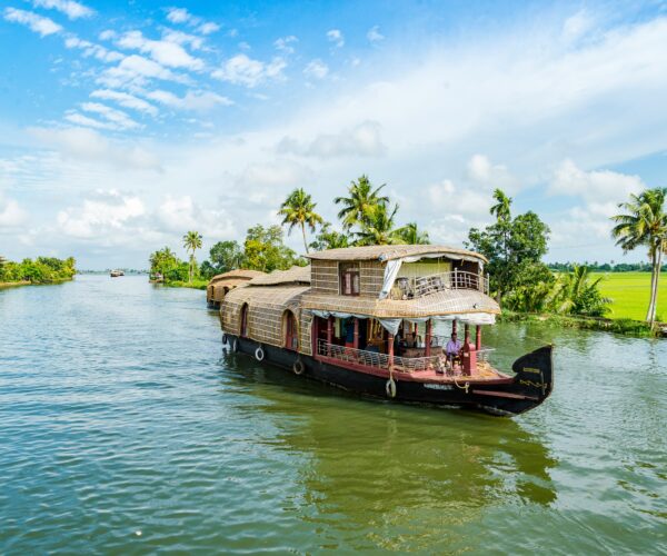 - Cruise through backwaters & canals – coconut groves, paddy fields, village life.